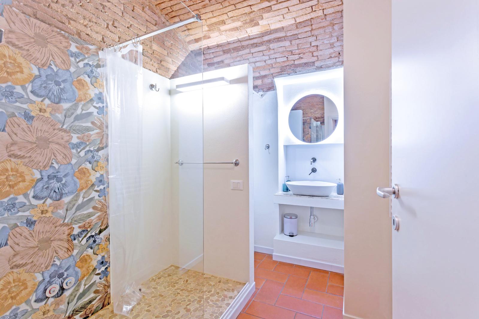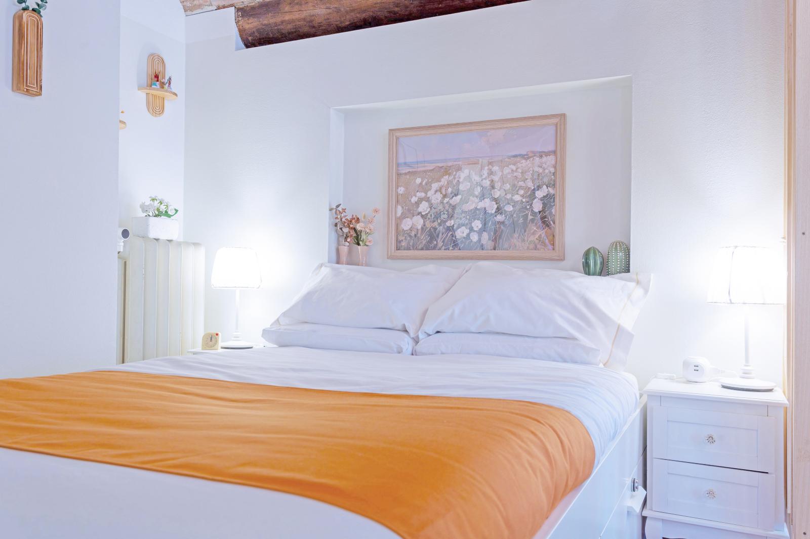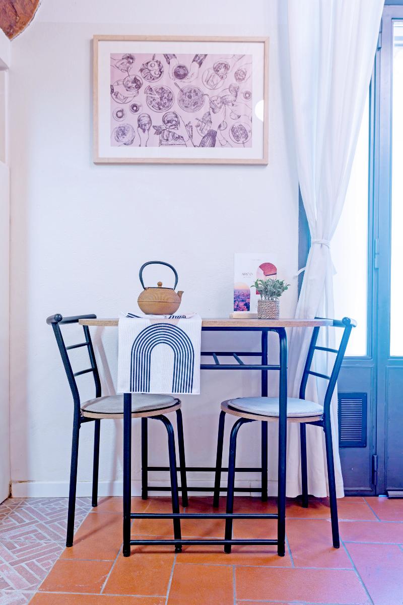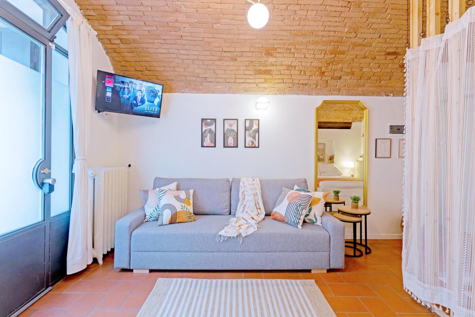 The brick-arched ceiling of Appartamento Arco creates a cozy, artistic & Authentic atmosphere. Designed for comfort and relaxation, it features a double bed and a convertible sofa for up to two extra guests.